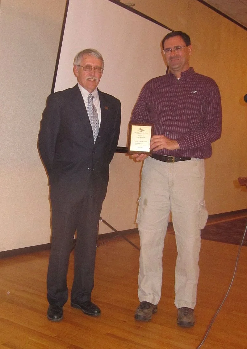 Forbush President Alan Marble presents the Forbush Fellow award to Charles E. Caron at the Forbush Bird Club annual meeting and dinner on April 21, 2011